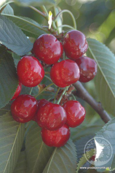 Plody: velké s průměrnou hmotností 9-13 g, průměrná velikost plodu 28-33 mm, tvar srdcovitý, slupka plodu má tmavě červenou barvu, dužnina je rovněž tmavě červené barvy, pevná, šťavnatá, dobré chuti, sladce navinulá, šťáva dobře barví, má harmonické aroma