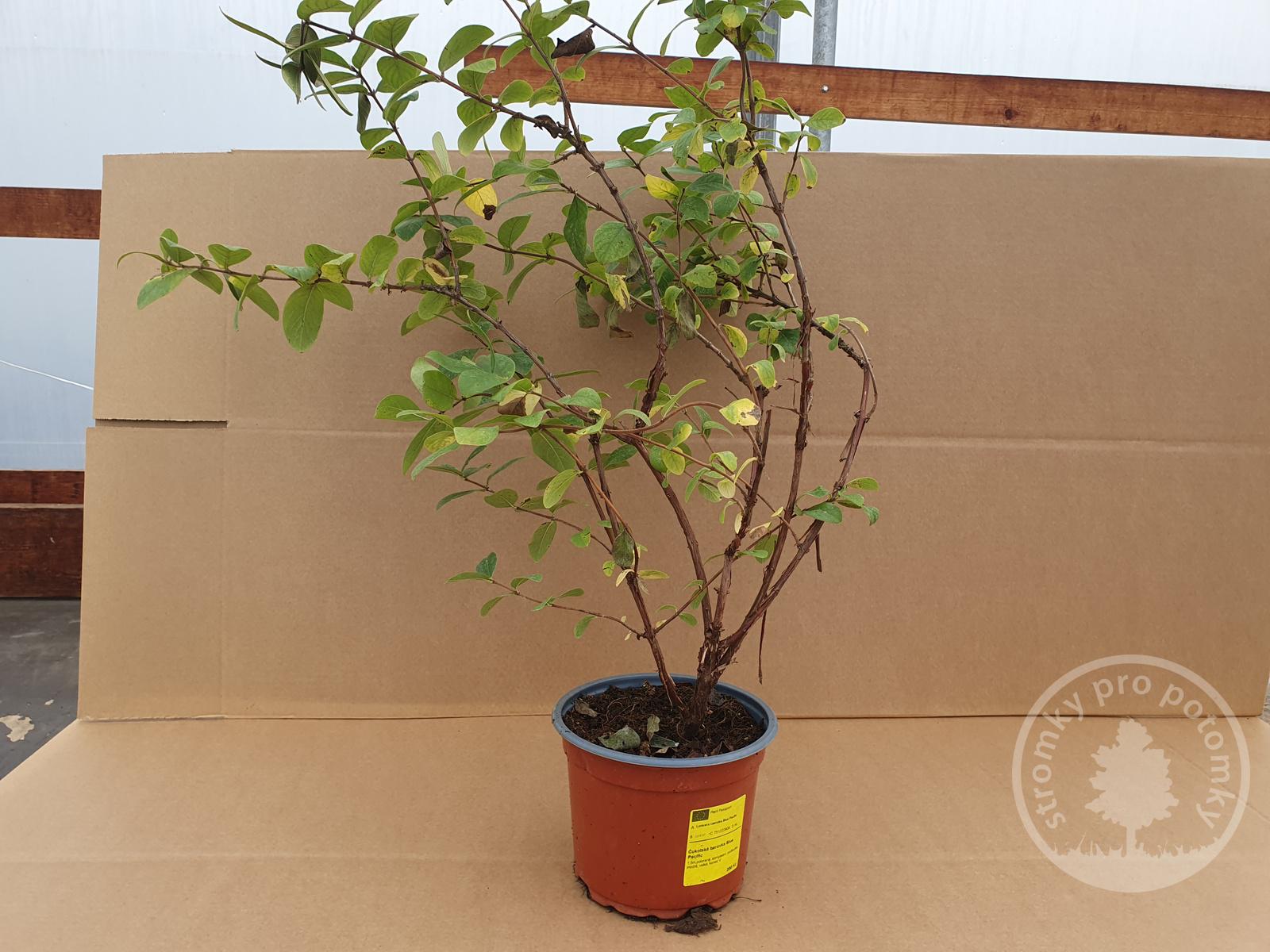 Tyto sazenice zimolezu kamčatského Blue Pacific jsou prodávány v kontejneru o objemu 2 litry.