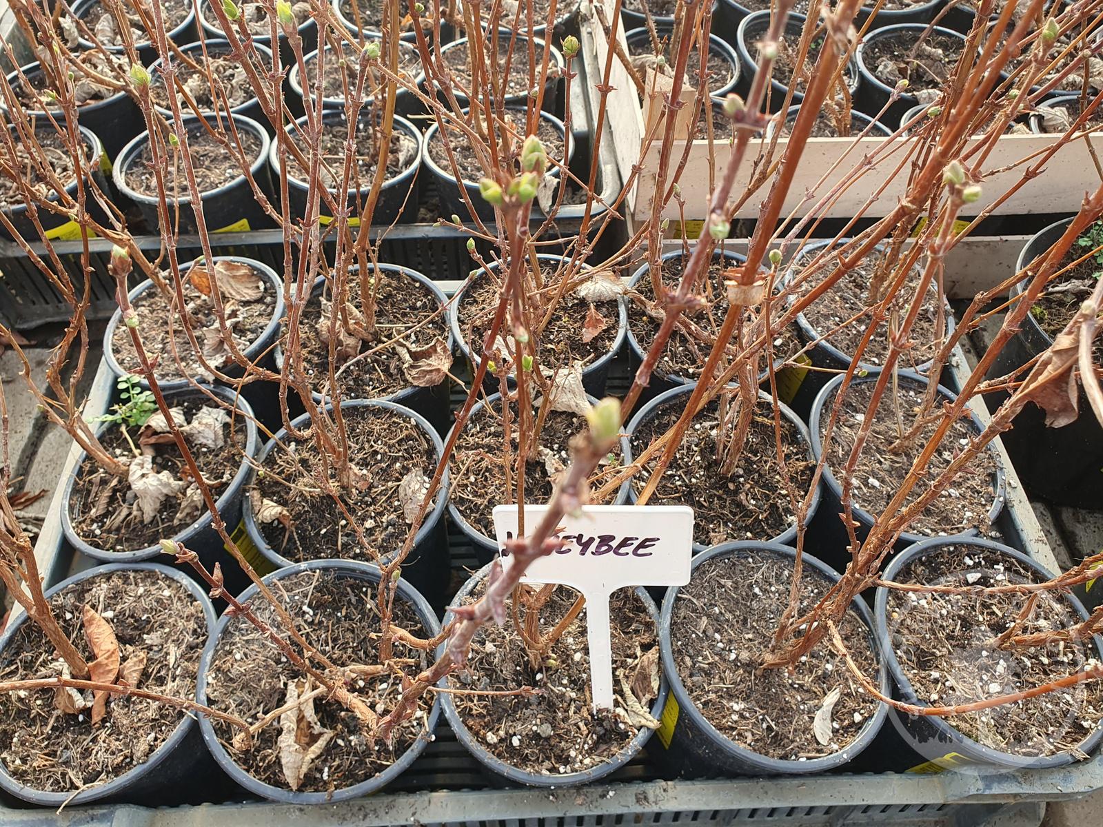 Tyto sazenice zimolezu kamčatského Honeybee jsou prodávány v kontejneru typu P13 o objemu 1 litr.