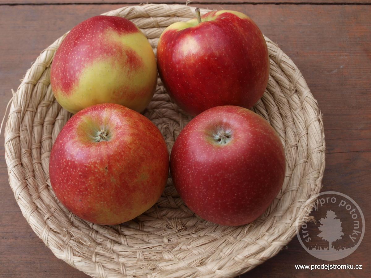 jablka jsou velká a kuželovitá. Jejich barva je žlutá krycí červená, celoplošně rozmytá. Dužina krémová a křehká. Chuť sladká a aromatická.