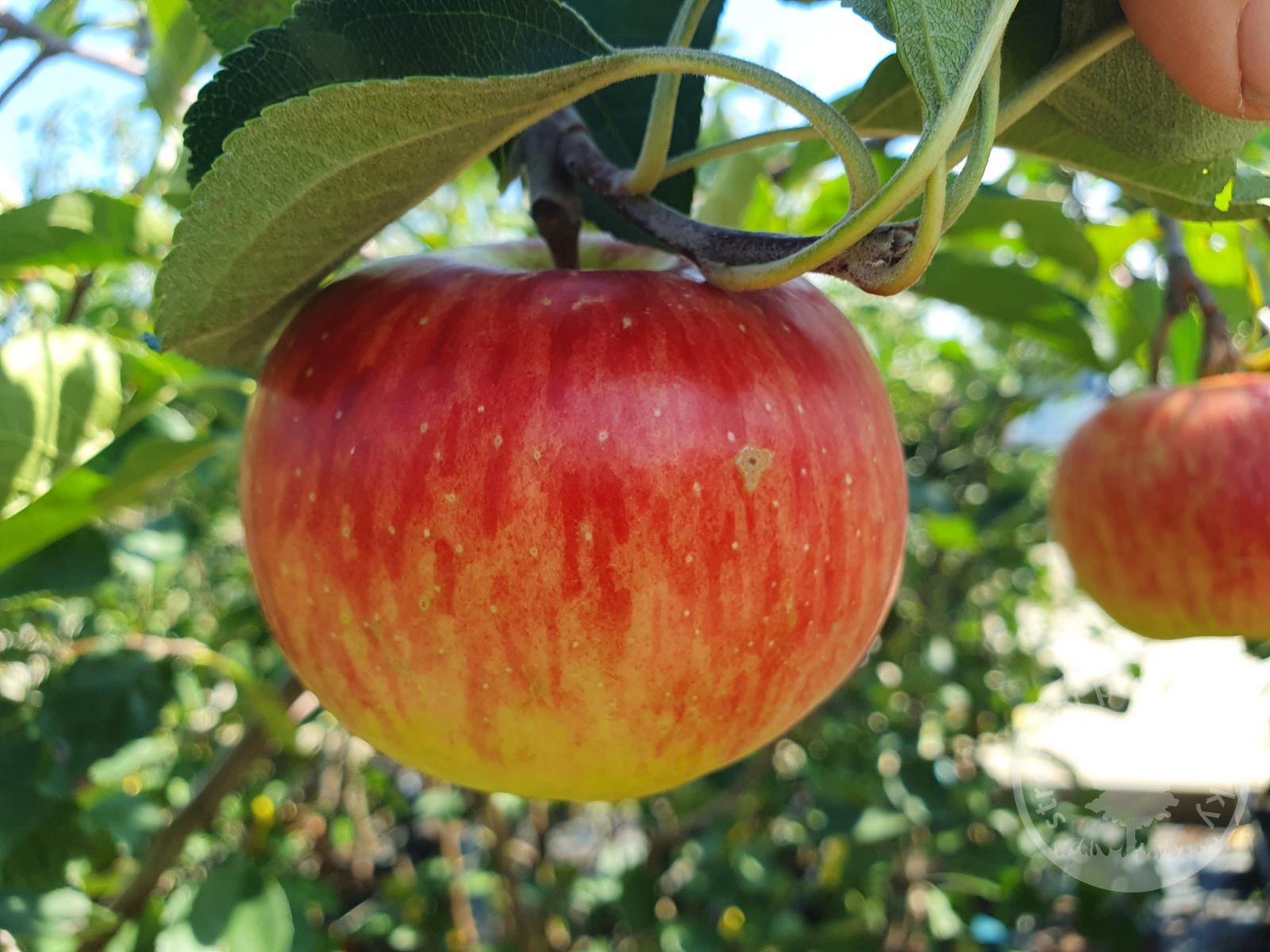 jablka jsou středně velká a ploše kulovitá. Jejich barva je základně žlutá, je ale cele překrytá jasně červeným páskovým žíháním. Dužina krémová, křupavá a středně šťavnatá. Chuť nasládlá.