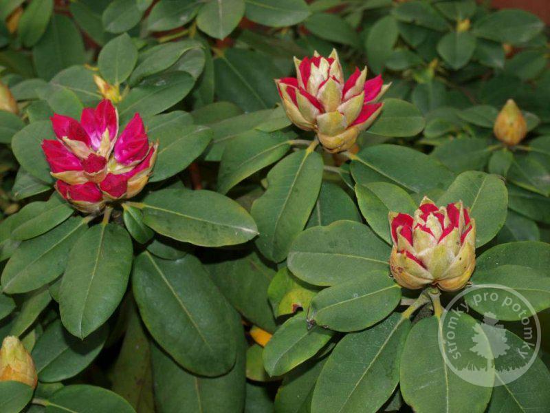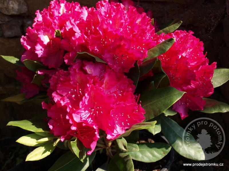 Sytě růžový kultivar velkokvětého rhododendronu.