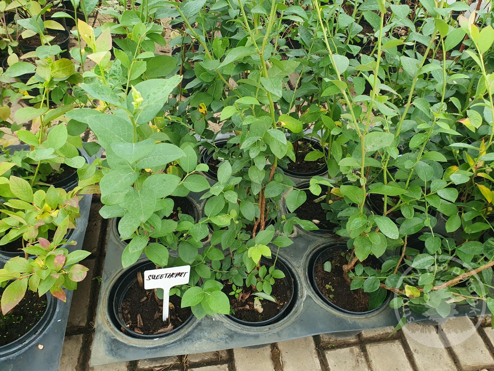 Tyto sazenice kanadské borůvky Sweetheart jsou prodávány v kontejneru o objemu 1,5–2 litry.